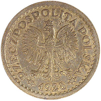 1 złoty 1928, Nominał w wieńcu z kłosów zboża, Parchimo...