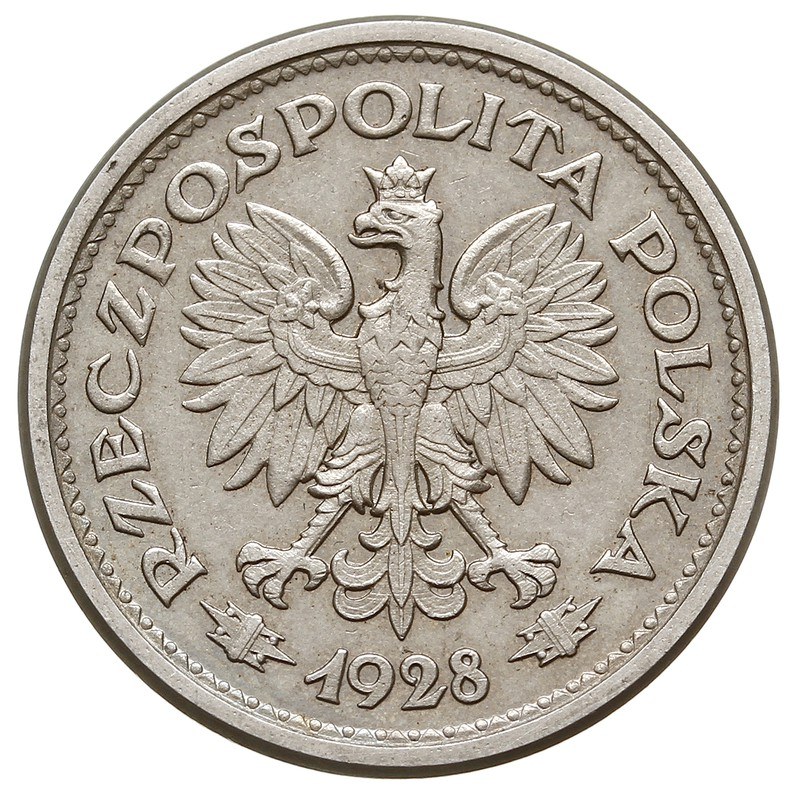 1 złoty 1928, Warszawa, nominał w wieńcu z gałązek dębo...