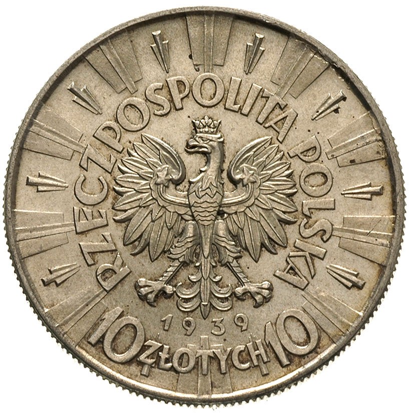 10 złotych 1939, Warszawa, Józef Piłsudski, Parchimowic...