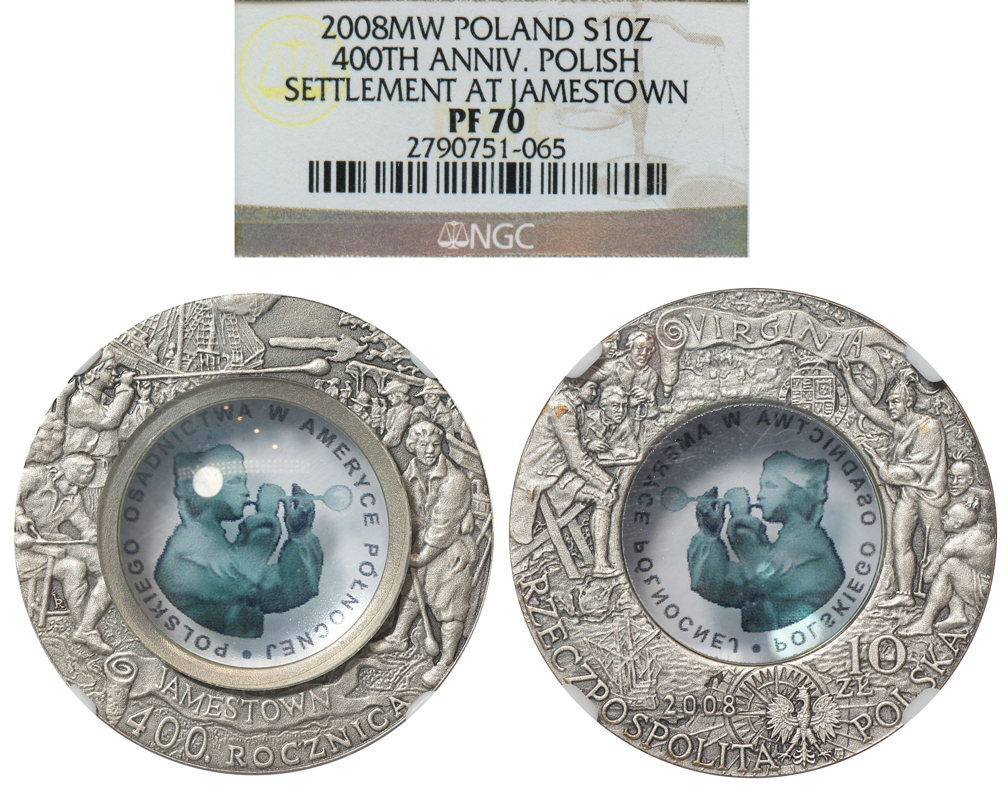 10 złotych 2008, 400 lat osadnictwa w Ameryce Północnej - NGC PF70