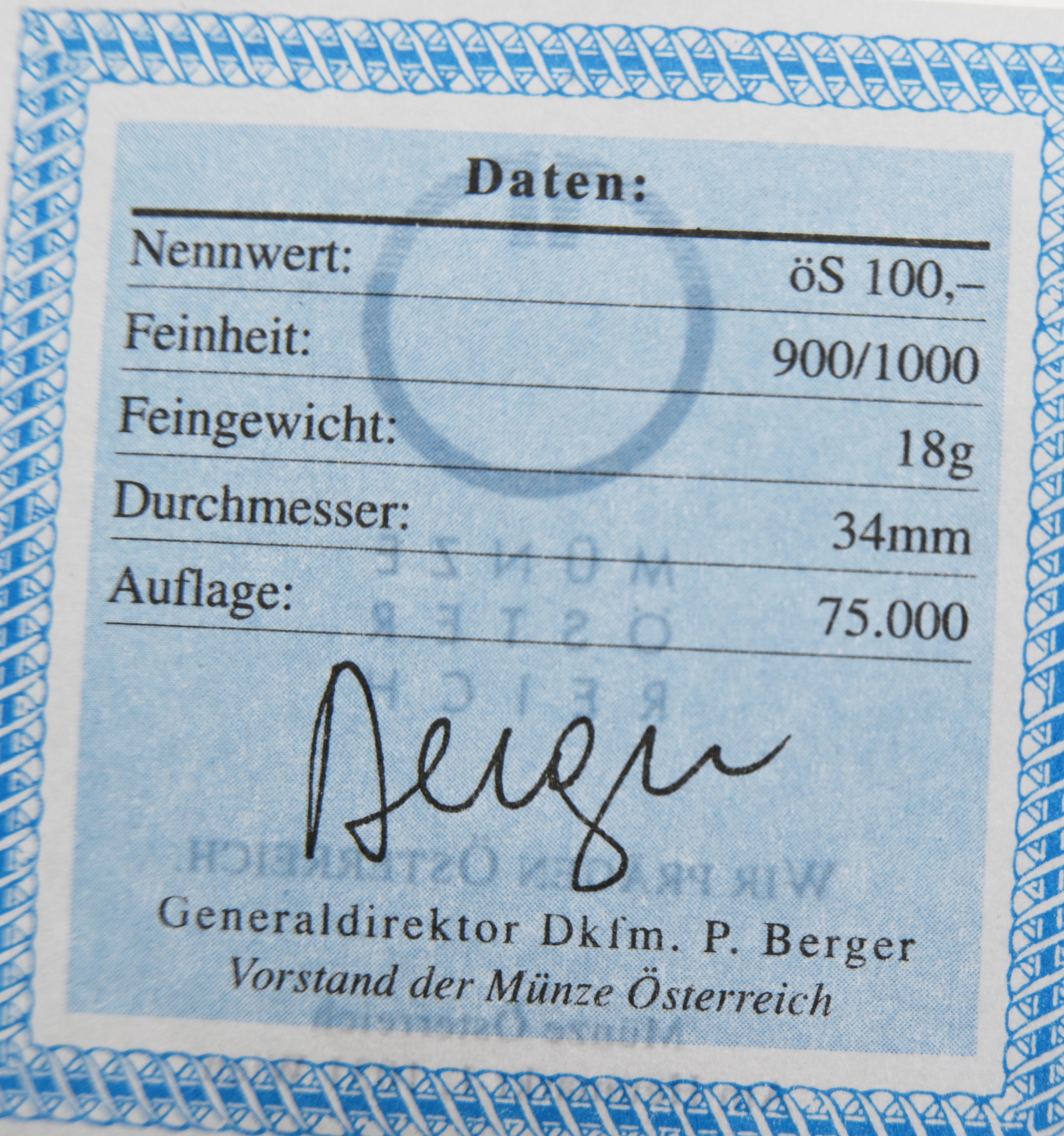 Leopold I., Proof, Ag 900/1000, 18 g, 34 mm, certifikát