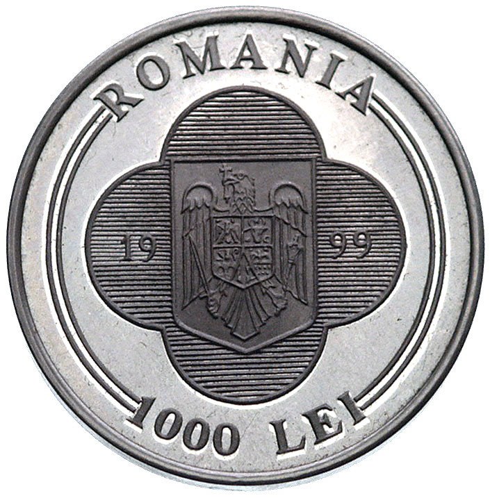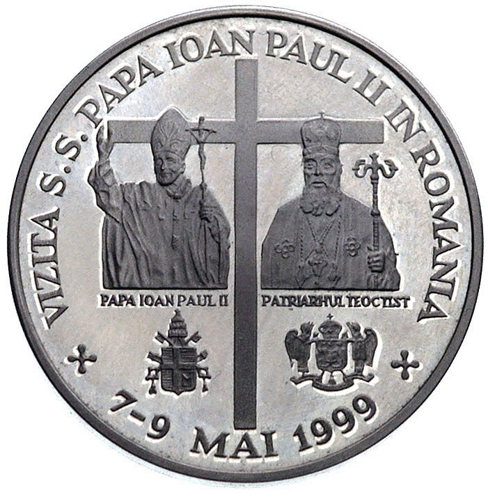 1000 lei 1999, moneta z okazji wizyty Jana Pawła II, sr...