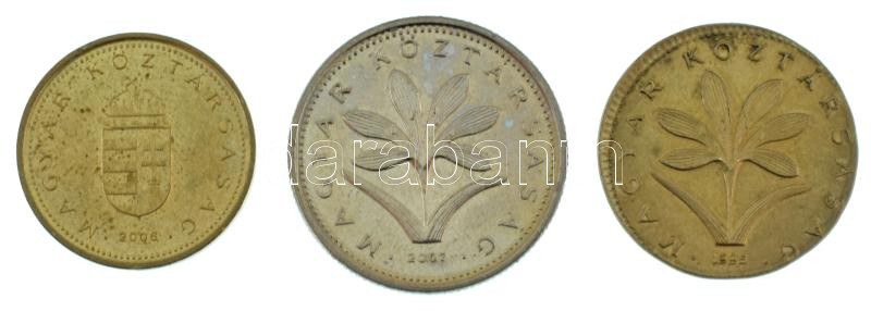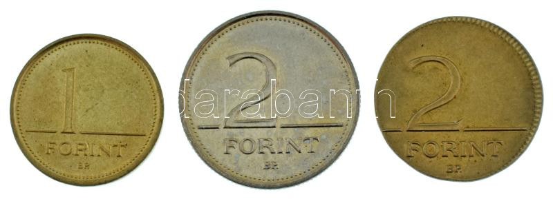 1995. 2Ft technológiai hibás veret: 1Ft-os érme lapkájára vert! + 1Ft és 2Ft támpéldány T:AU RRR! / Hungary 1995. 2 Forint technolgical error: strucked on 1 Forint coin planchet! + 1 Forint and 2 Forint reference pieces C:AU RRR!