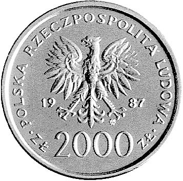 2.000 złotych 1987, Jan Paweł II, na rewersie wypukły n...
