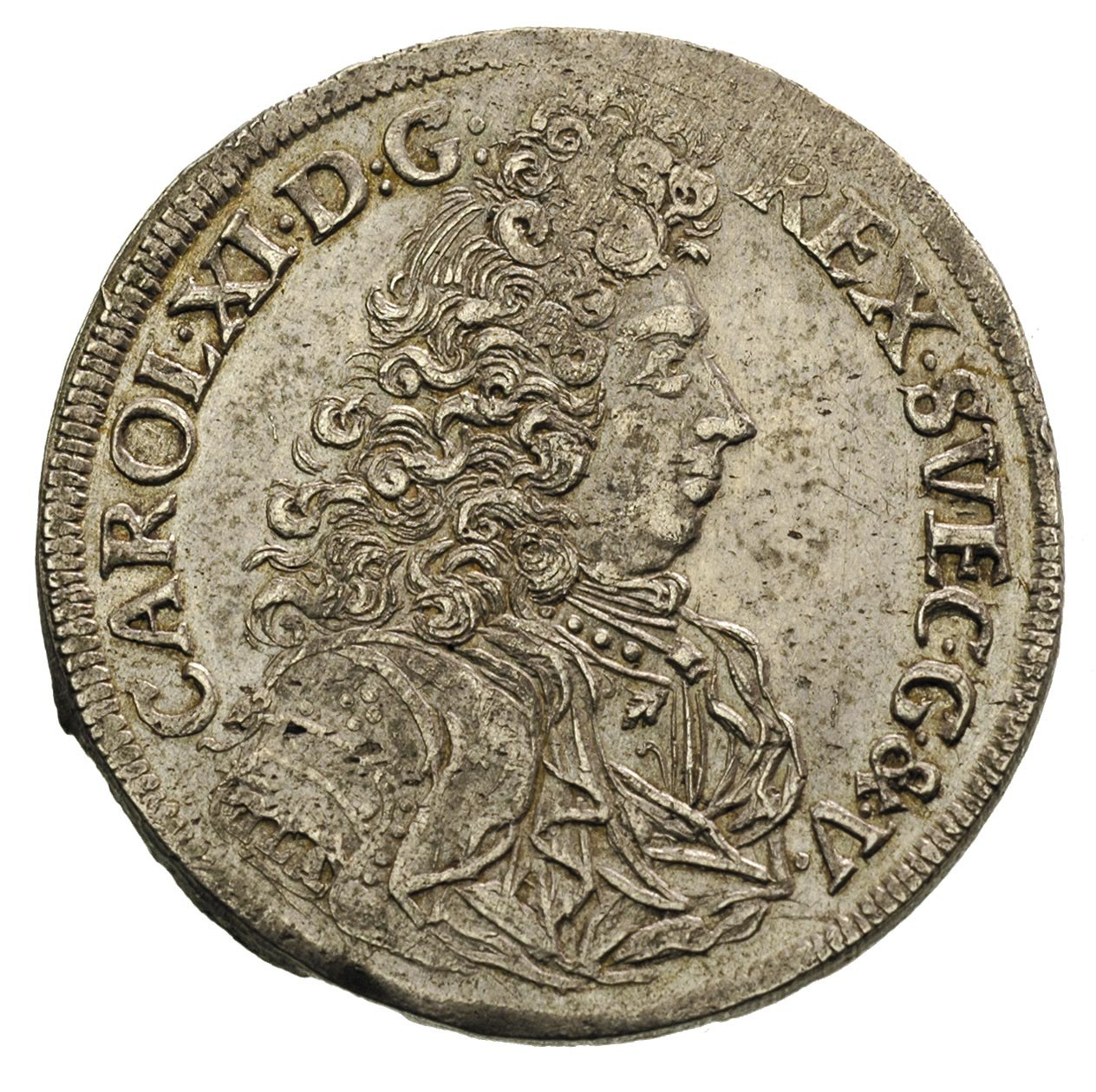 Karol XI 1660-1697, 2/3 talara (gulden) 1695, Szczecin, litery ILA, Ahlström 120.a, Dav. 768, patyna