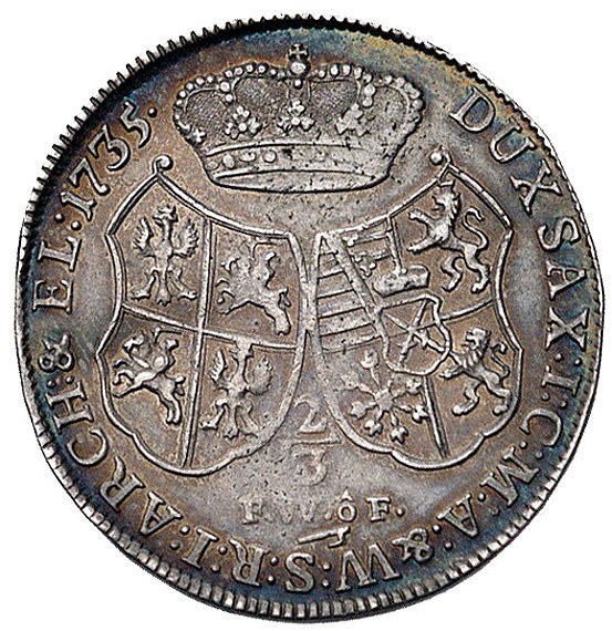 2/3 talara (gulden) 1735, Drezno, Kam. 1358 R1, Dav. 83...