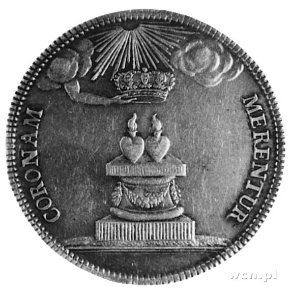 August III 1733-1764, 2/3 talara (gulden) 1738, Drezno, Aw: Napis, Rw: Dwa serca na ołtarzu i napis, Merseb.1827, Kop.298.Ia -R-, monetawybita z okazji ślubu córki króla Marii Amalii z Karolem Sycylijskim; stara patyna