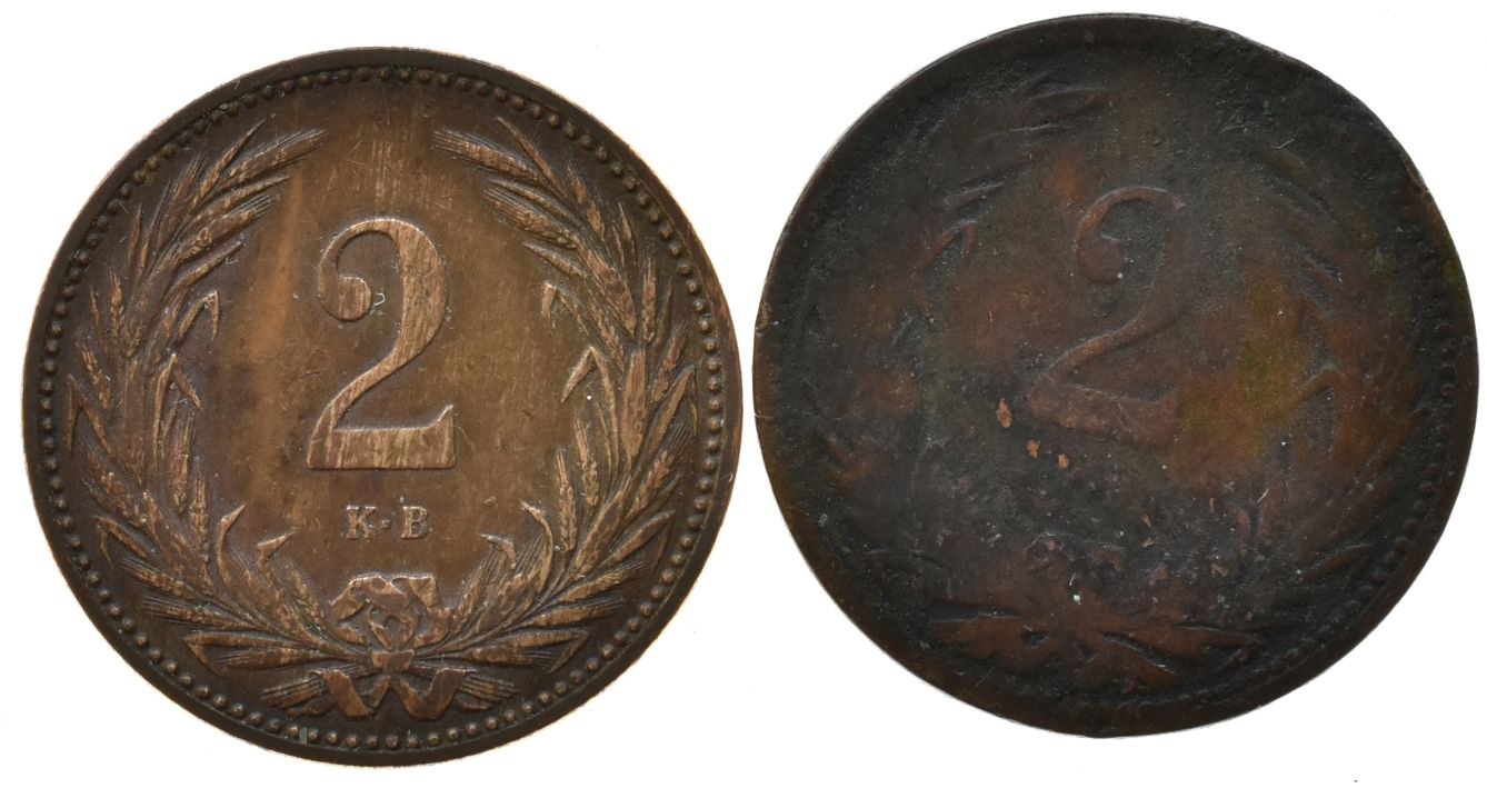 2 fillér 1893 KB, 1895 KB, 2 ks