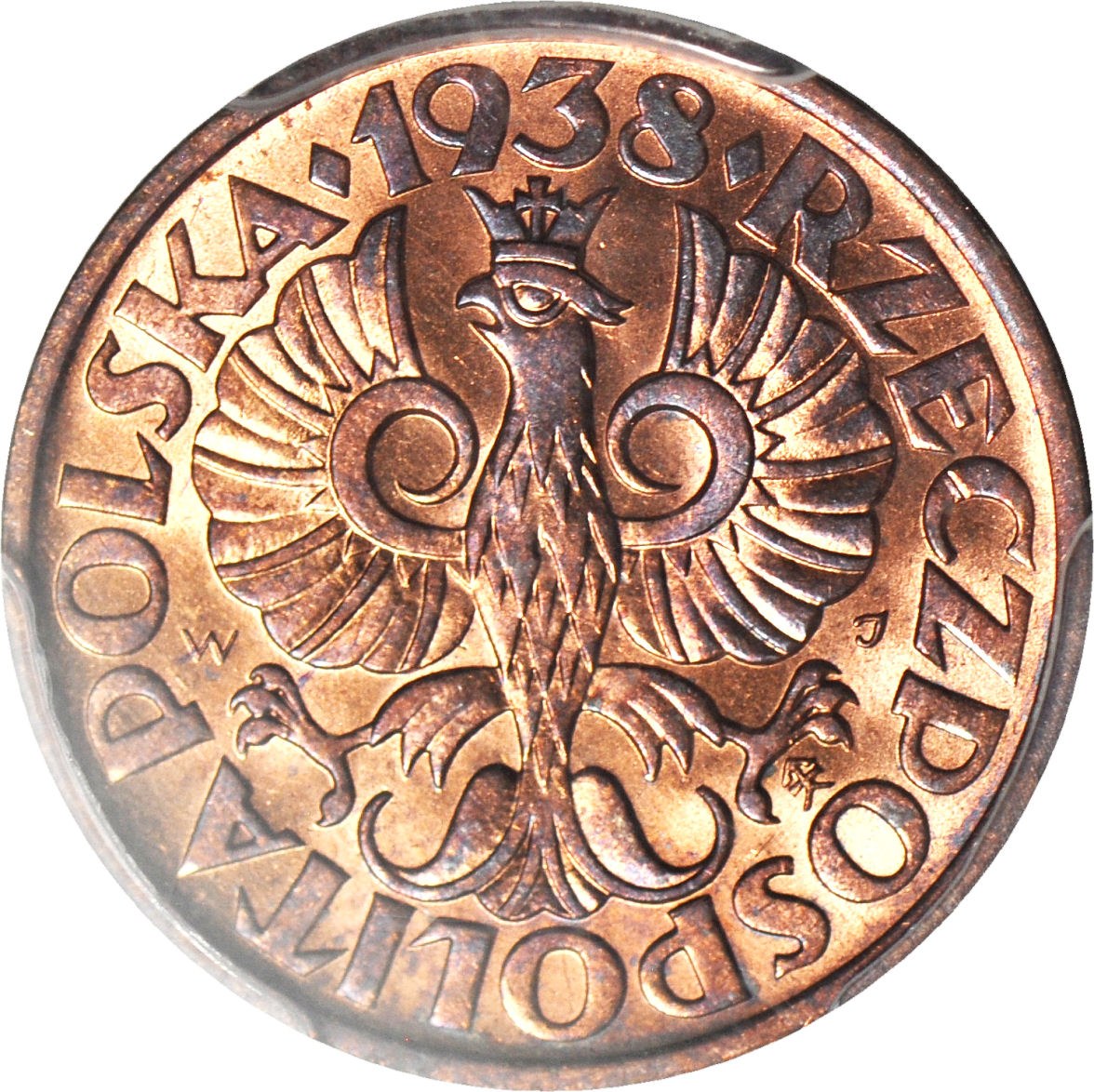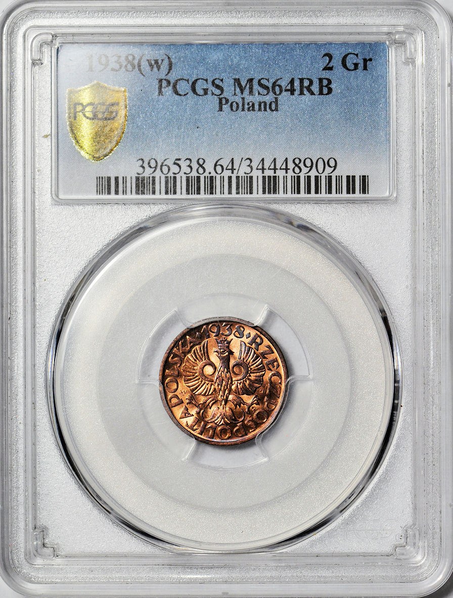 2 grosze 1938, menniczy, kolor RB