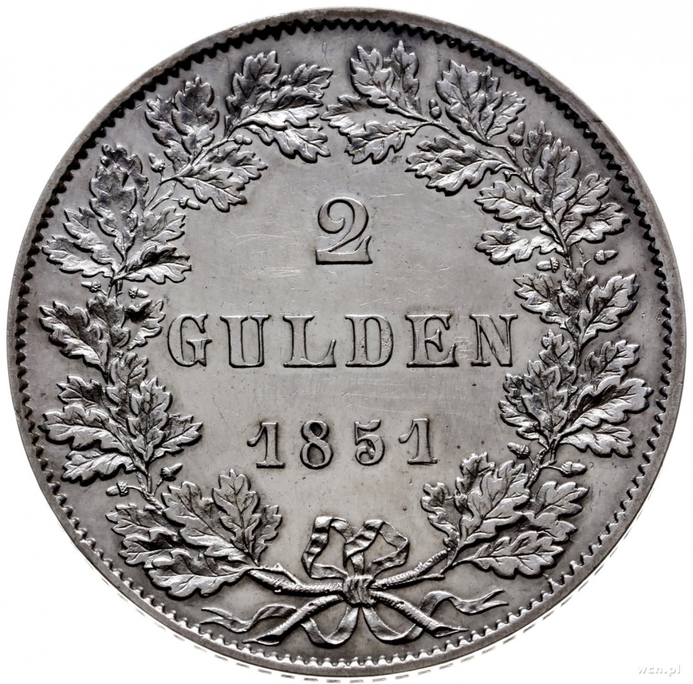 Frankfurt - miasto, 2 guldeny 1851, Frankfurt; Dav. 642, AKS 5, Thun 132; piękne
