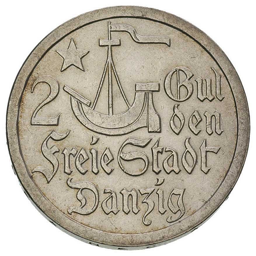 Wolne Miasto Gdańsk, 2 guldeny 1923, Utrecht, Koga, Parchimowicz 63 b, moneta wybita stemplem lustrzanym