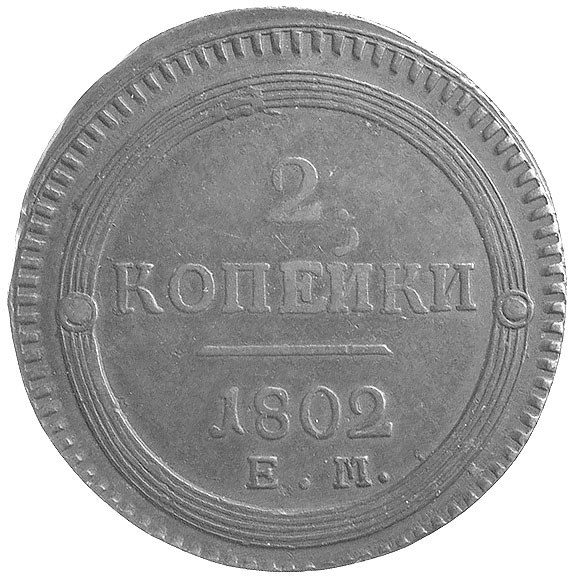 2 kopiejki 1802, Jekatierinburg, Aw: Orzeł dwugłowy, Rw...