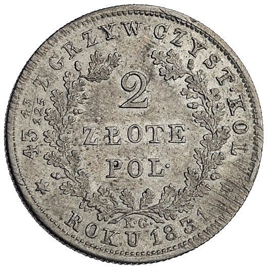Powstanie Listopadowe 1830-1831, 2 złote 1831, Warszawa, Plage 273, justowane, ładny egzemplarz