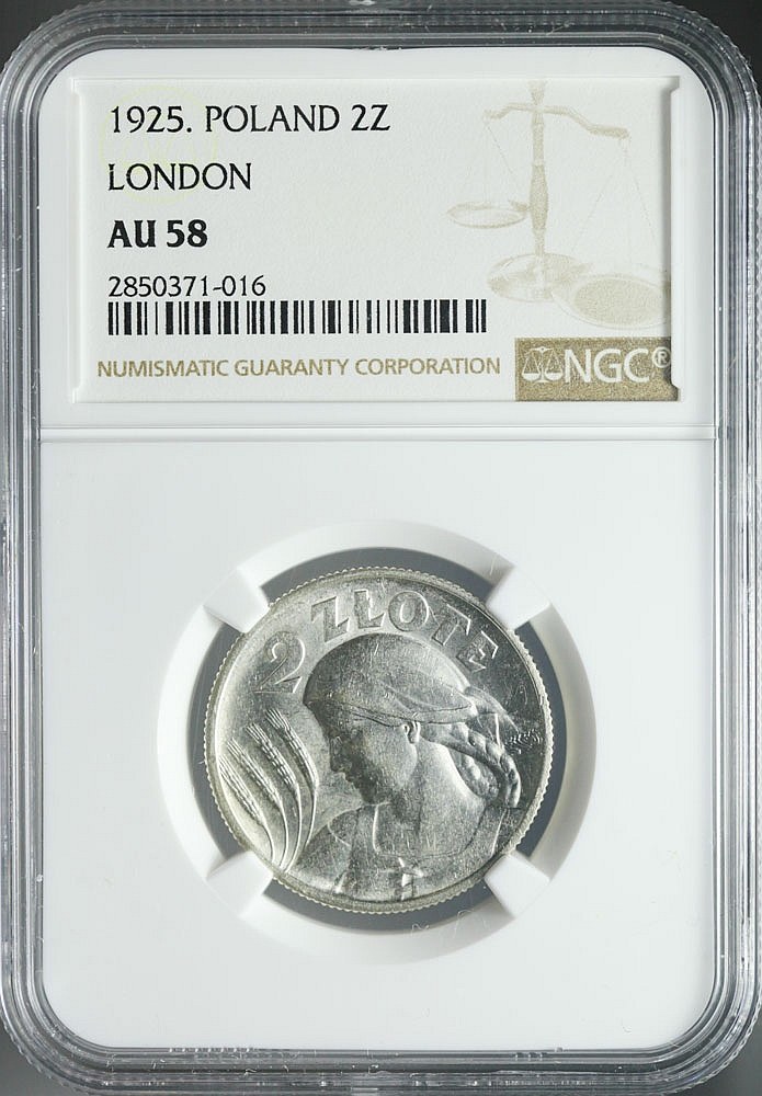 2 złote 1925, Żniwiarka, kropka po dacie (Londyn), bardzo ładne