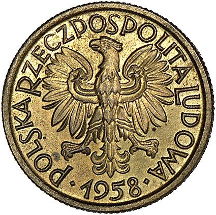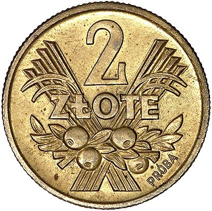 2 złote 1958, na rewersie wypukły napis PRÓBA, Parchimo...