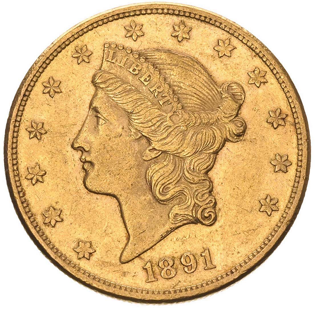 U S A, 20 dolarów 1891/CC, Carson City, Fr. 179, złoto, 33.41 g, bardzo rzadkie, wybito 5.000 sztuk