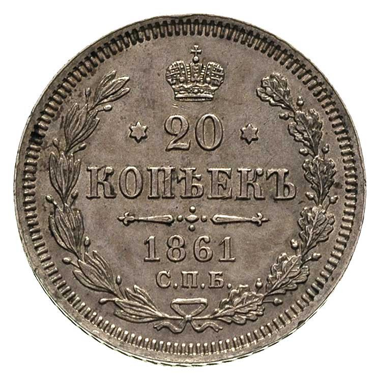 20 kopiejek 1861, Petersburg, litery î-Å, Bitkin 173, p...