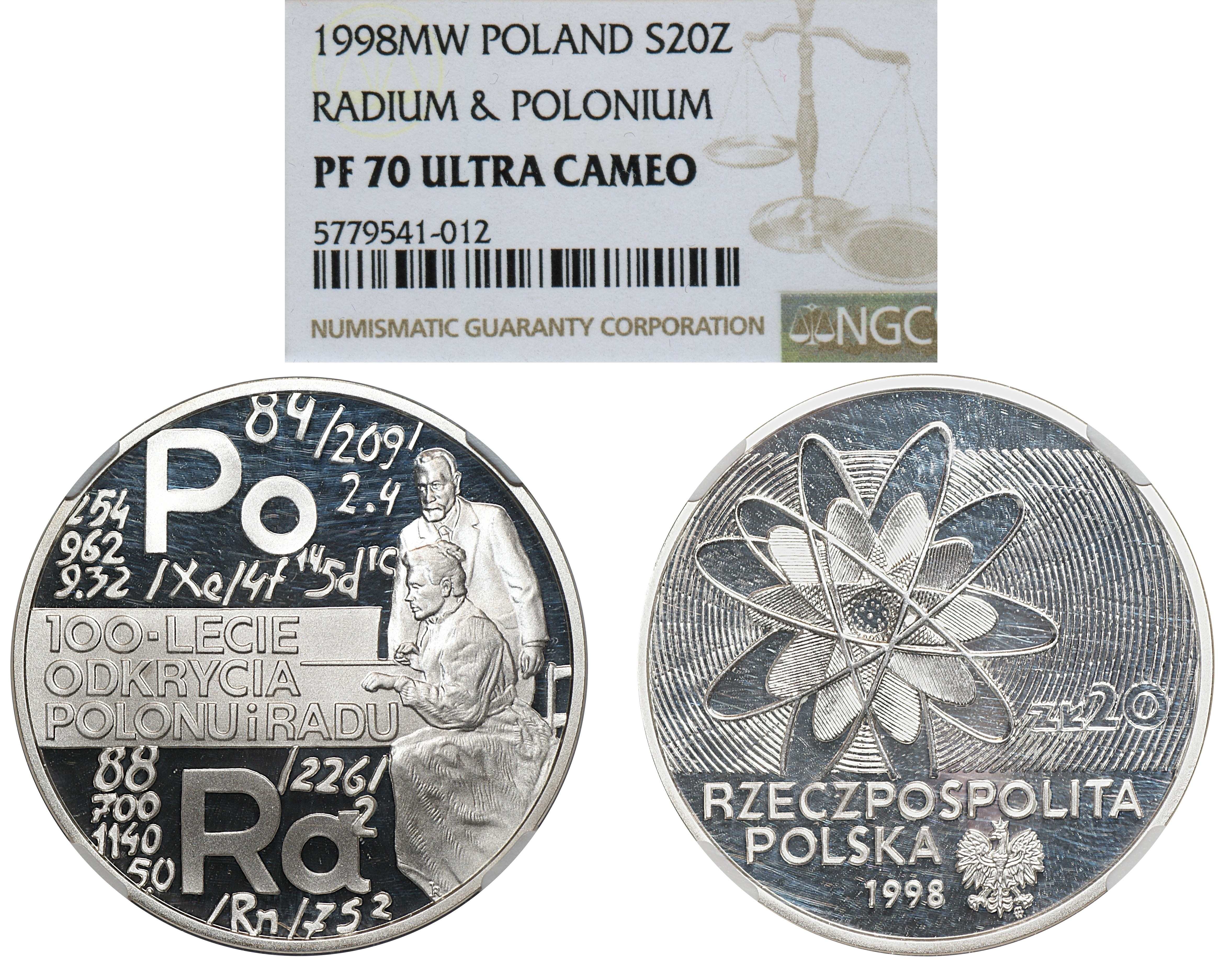 20 złotych 1998 Polon i Rad - NGC PF70 ULTRA CAMEO