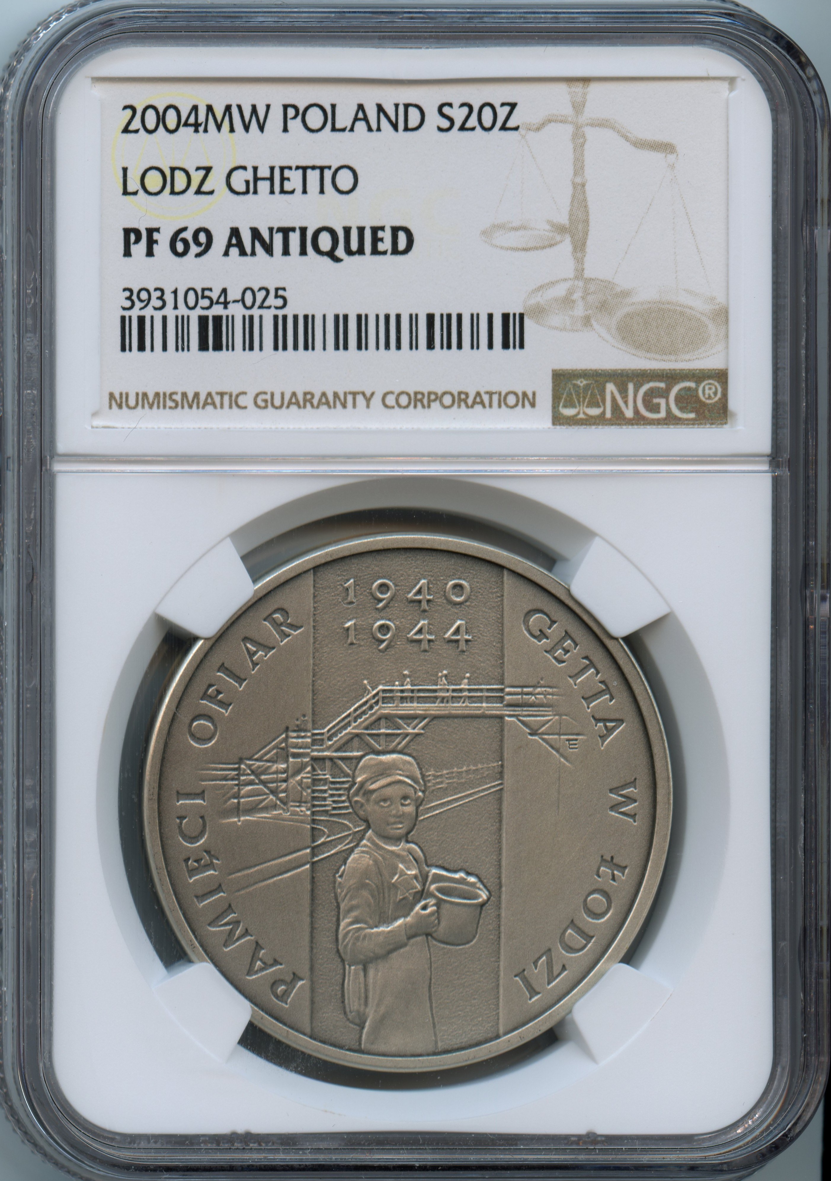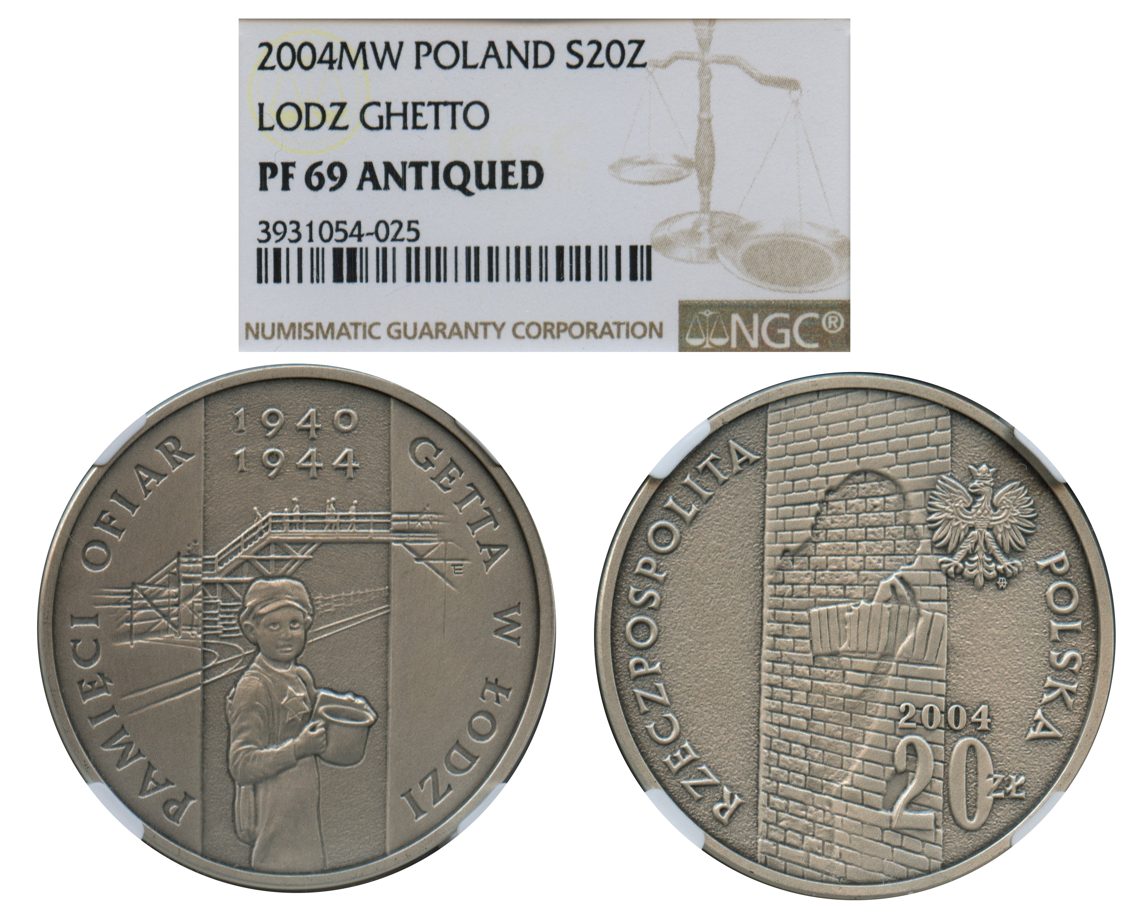20 złotych 2004, Pamięci Ofiar Getta w Łodzi - NGC PF69 ANTIQUED