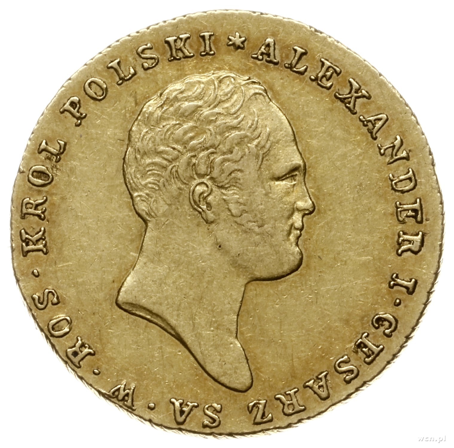 Aleksander I 1801-1825, 25 złotych 1818, Warszawa; Aw: Głowa cara w prawo i napis w otoku ALEXANDER I CESARZ SA W ROS KRÓL POLSKI; Rw: Dwugłowy Orzeł rosyjski z jabłkiem królewskim i mieczem w szponach, poniżej litery I-B (Jakuba Benicke) i napis w otoku 52 Z GRZ CZ KOL / data 1818 / 25 ZŁOT POLSK; Bitkin 813 (R), Fr. 106, H.-Cz. 3527, Kop. 2724 (R2), Plage 12, Berezowski 40 zł; złoto 4.89 g; bardzo ładnie zachowane
