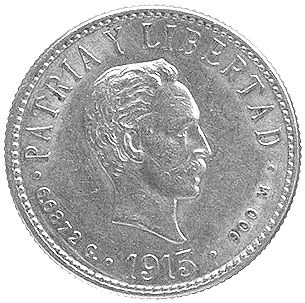 KUBA, 4 peso 1915, Aw. i Rw. j. w., Fr.5, złoto, 6.69 g, rzadki rocznik