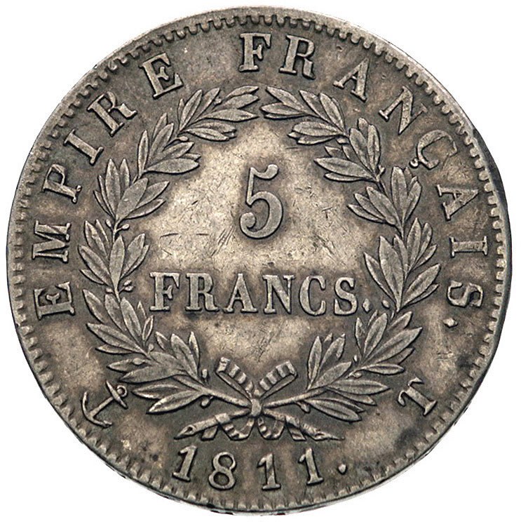 5 franków 1811 T, Nantes, Gadoury 584, patyna