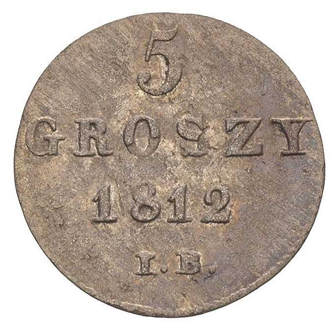 Księstwo Warszawskie 1807-1815, 5 groszy 1812, Warszawa, przebitka na 1/24 talara pruskiego, Plage 99