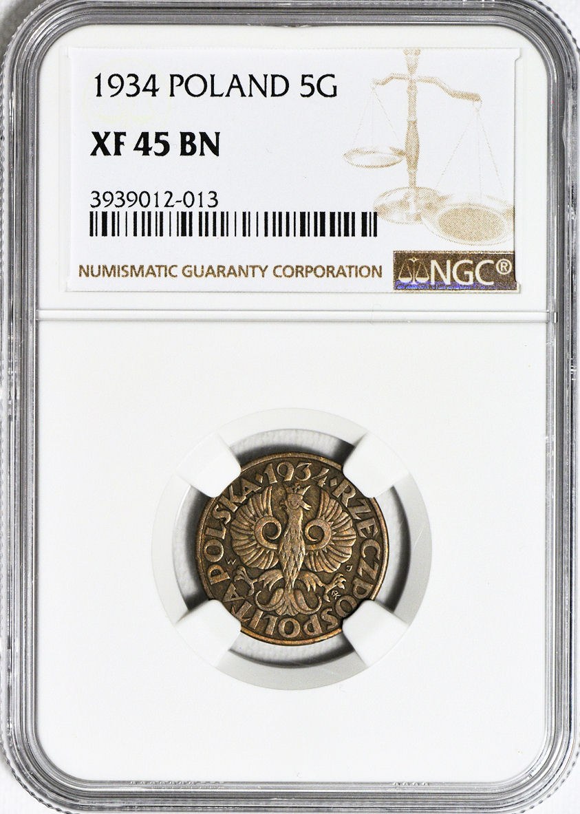 5 groszy 1934, kolor BN, rzadkie, piękne