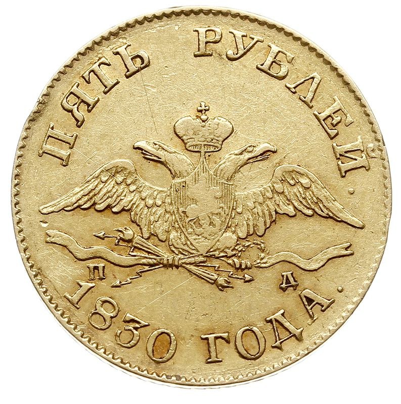 5 rubli 1830 СПБ ПД, Petersburg, złoto 6.44 g, Bitkin 5...