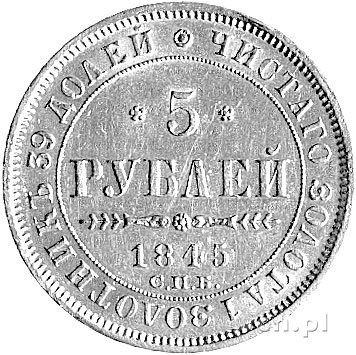 Mikołaj I 1825- 1855, 5 rubli 1845, Petersburg, Fr. 138, Uzdenikow 0223, Mich.480, złoto 6.50 g.