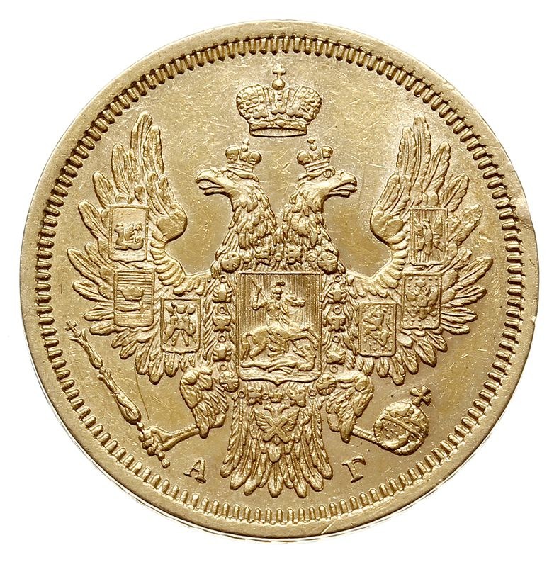 5 rubli 1852 СПБ АГ, Petersburg, złoto 6.53 g, Bitkin 3...