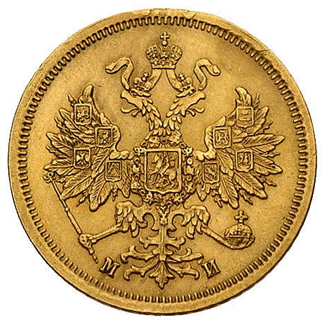 Aleksander II 1855-1881, 5 rubli 1863. Petersburg, Bitkin 9, Fr. 163, złoto 6.48 g, patyna