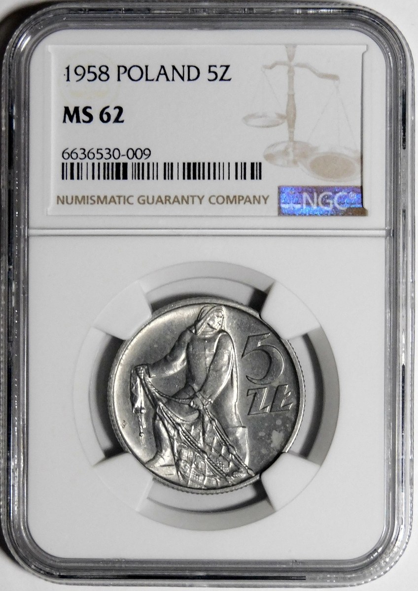 5 złotych Rybak 1958 - wąska ósemka
