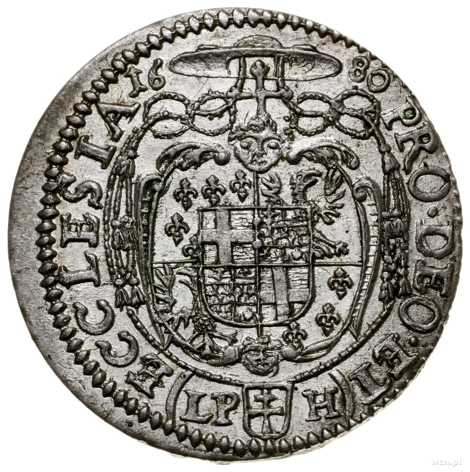 Fryderyk Heski (1671–1682), 6 krajcarów, 1680 LPH, Nysa; wariant z mniejszym popiersiem; E.-M. 52 (R), F.u.S. 2713, Kop. 6913 (R); wyśmienita moneta pełna blasku menniczego, rzadkość w tym stanie zachowania.