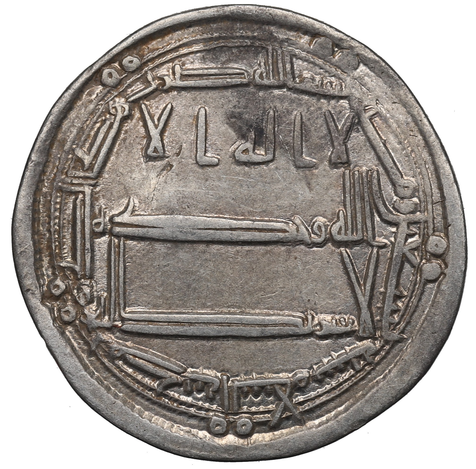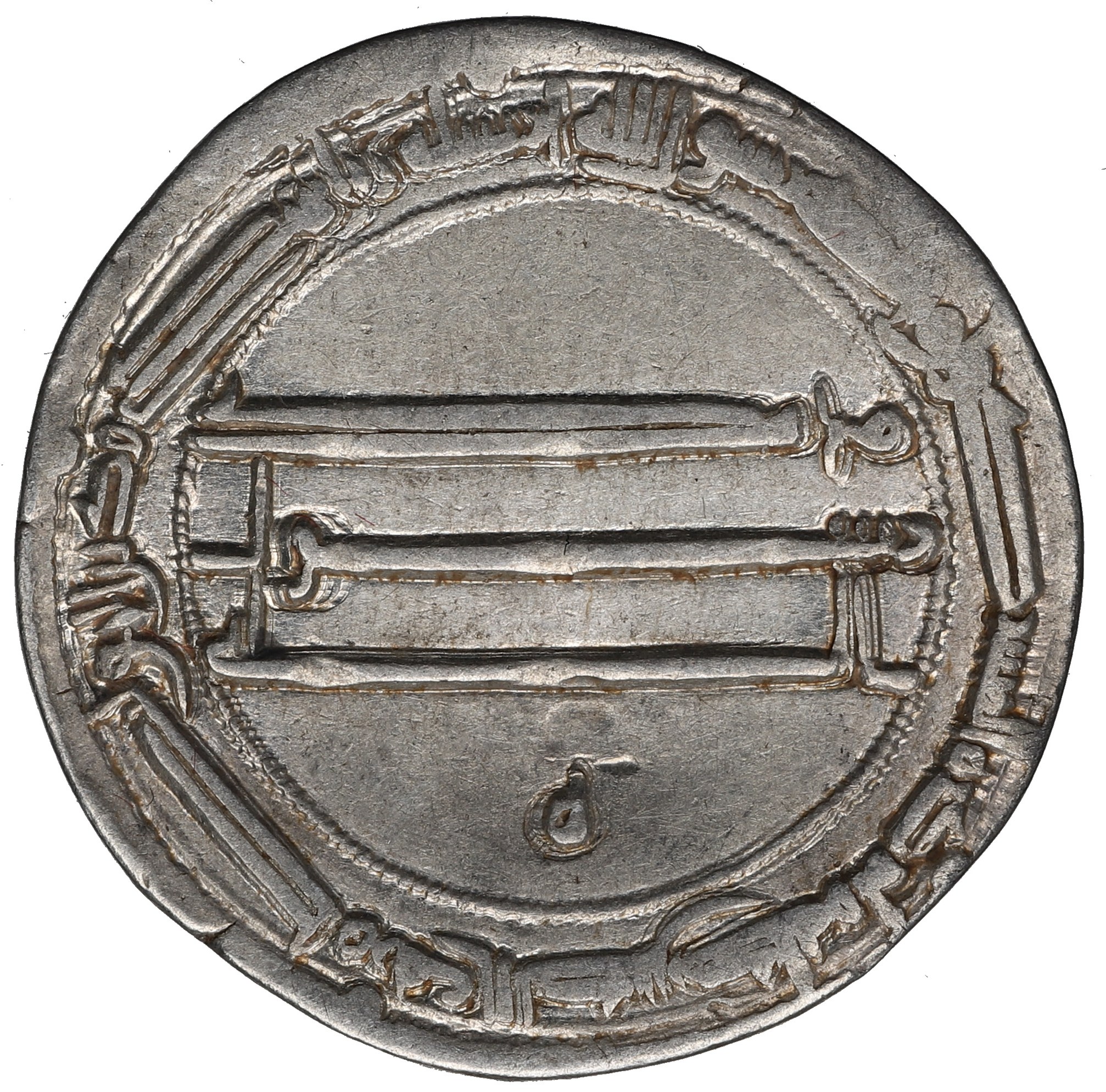 Ładny, dobrze wybity przykład dirhama abbasydzkiego.