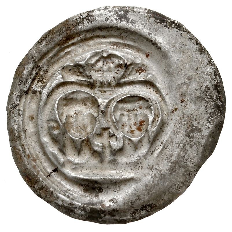 Magdeburg- arcybiskupstwo, abp Wichmann von Seeburg 1154-1192, brakteat, mennica Halle; Popiersie św. Maurycego z lewej i biskupa w infule z prawej, między nimi krzyż, z lewej skośnie miecz, z prawej pastorał; nad nimi na łuku wieża, srebro 0.71 g, Suhle 61, Slg. Friedensburg 1202, ładny, czytelny okaz