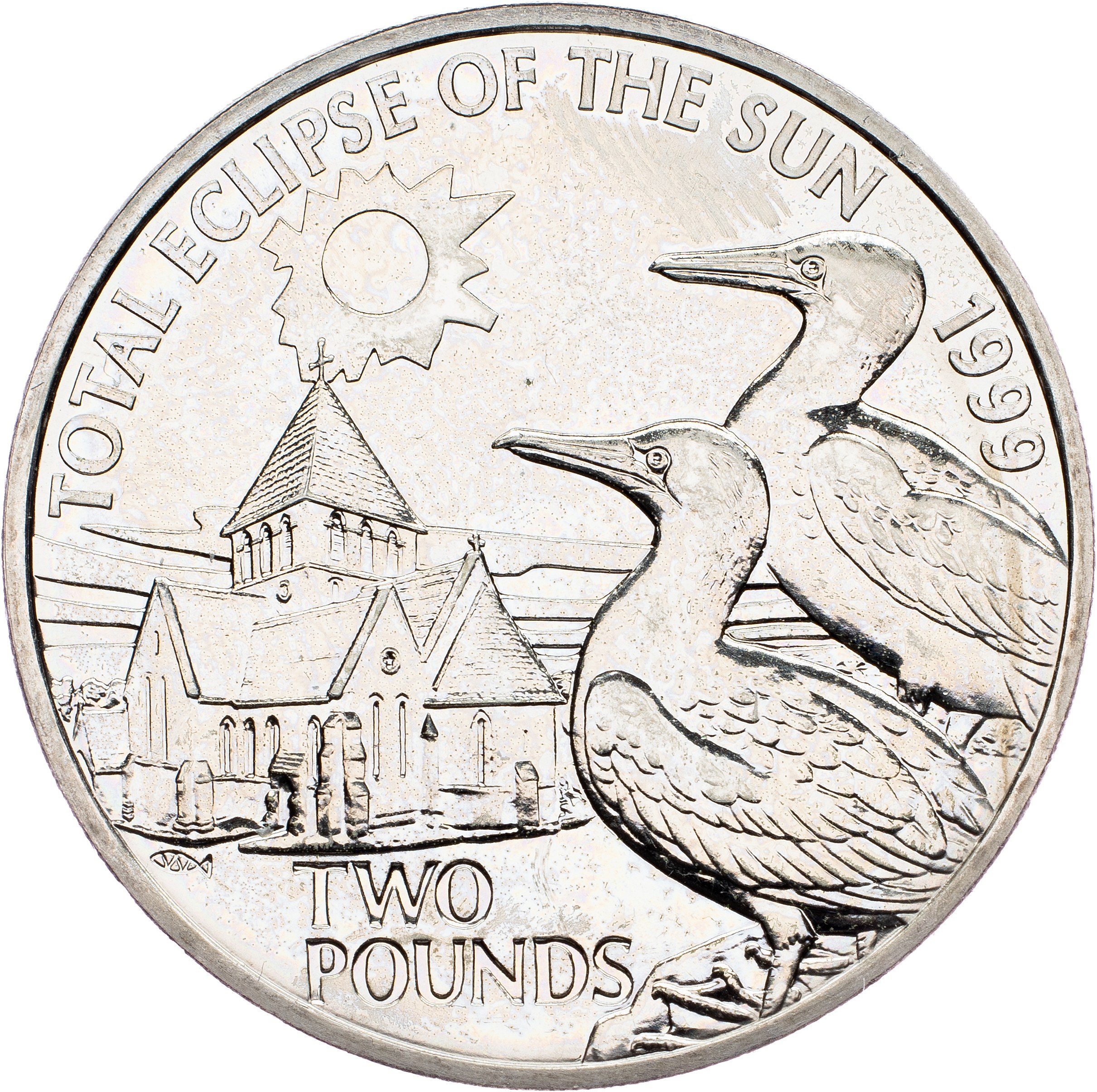 Alderney, 2 Pounds 1999, Llantrisant, 27,972 g, Copper-nickel, KM# 18, toned, Total Eclipse of the Sun; UNC