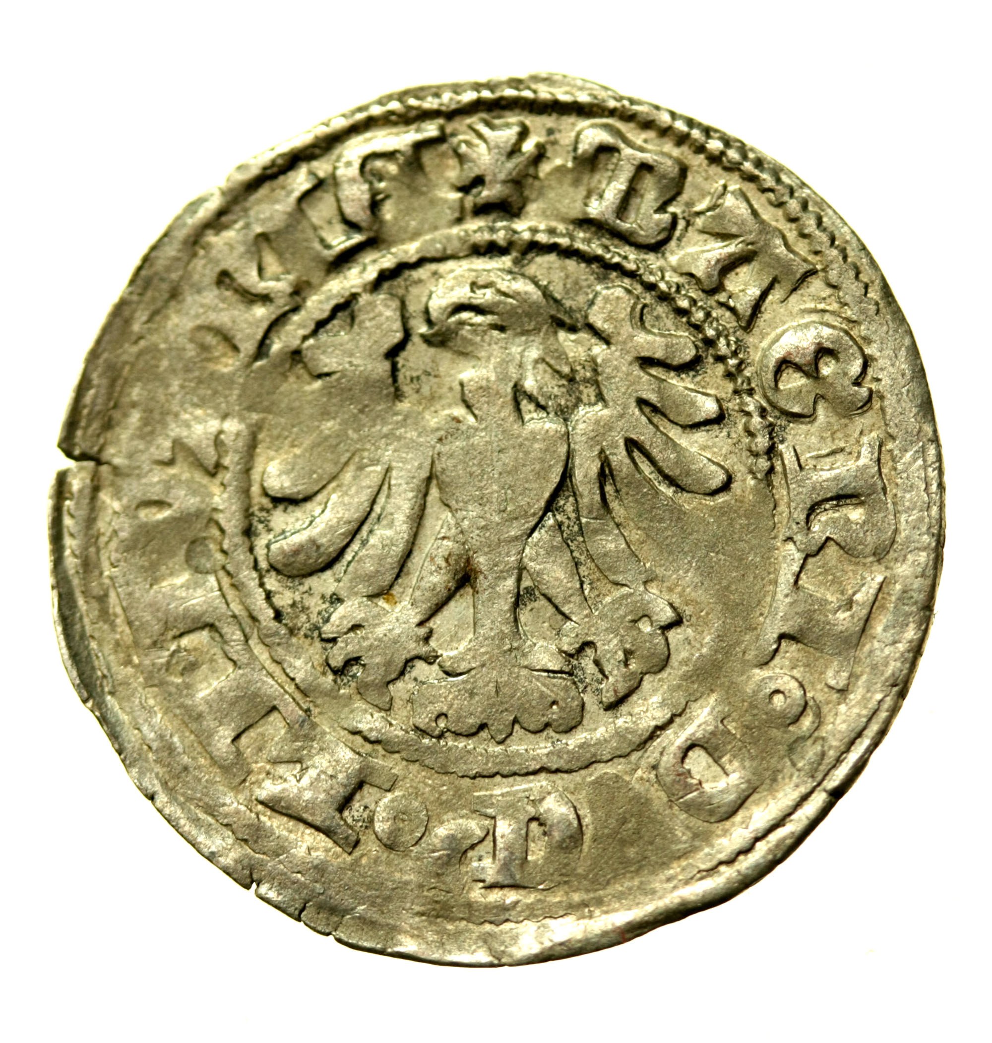 Aleksander Jagiellończyk, Półgrosz bez daty, Wilno. Stan zachowania 2. Bardzo dobrze zachowany egzemplarz. Połysk menniczy.