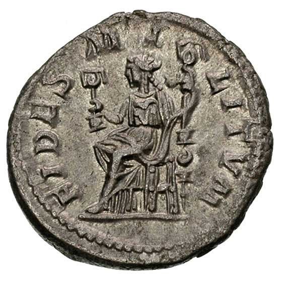 CESARSTWO RZYMSKIE, Aleksander Sewer 222-235, denar, Aw: Popiersie w wieńcu w prawo i napis, Rw: Fides siedząca w lewo z dwoma sztandarami w dłoniach, napis FIDES MILITVM, Sear 51, RIC 193, 3.03 g