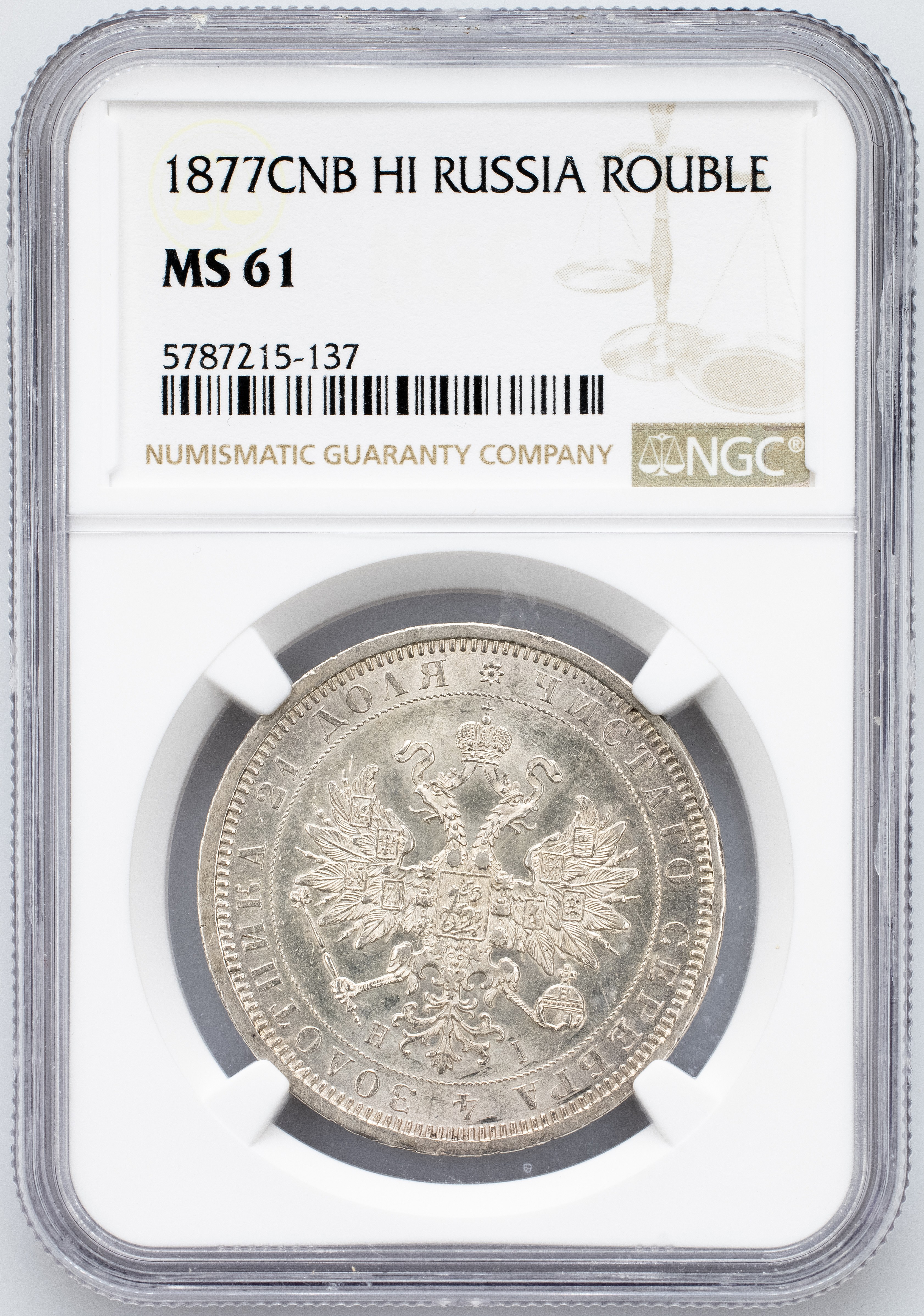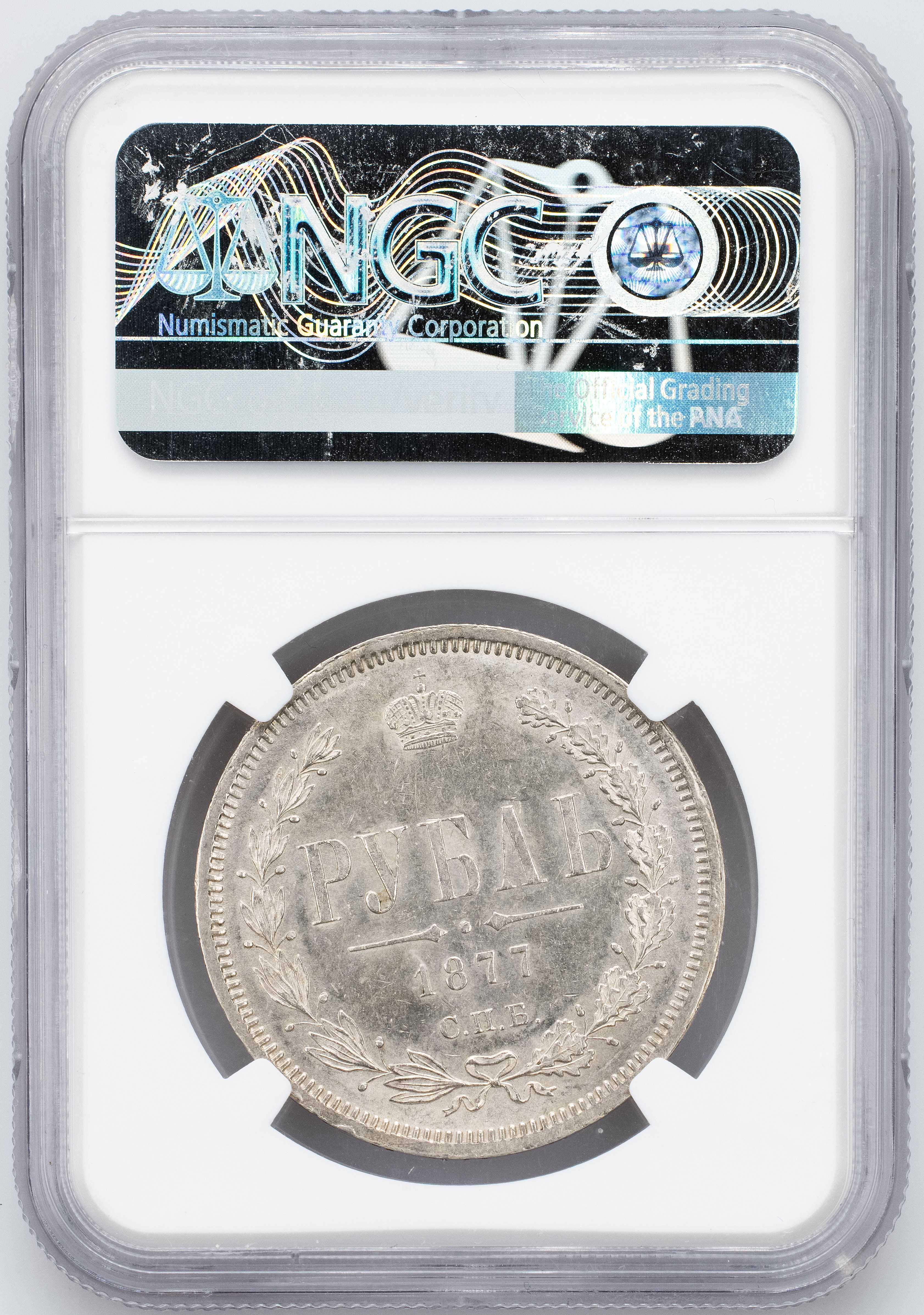 Alexander II., 1 Rouble 1877, СПБ-НІ, 20,73 g, Ag (868/1000), Bitkin# 90, mint luster; NGC MS61