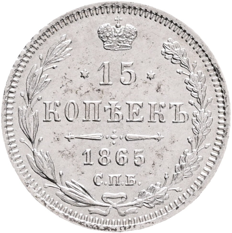 ALEXANDER II. The Liberator 15 Kopecks 1865 SPB NI Y#21 Ag.750 3,06g 19,8mm St.Petersburg, mintmaster Nikolay Follendorf