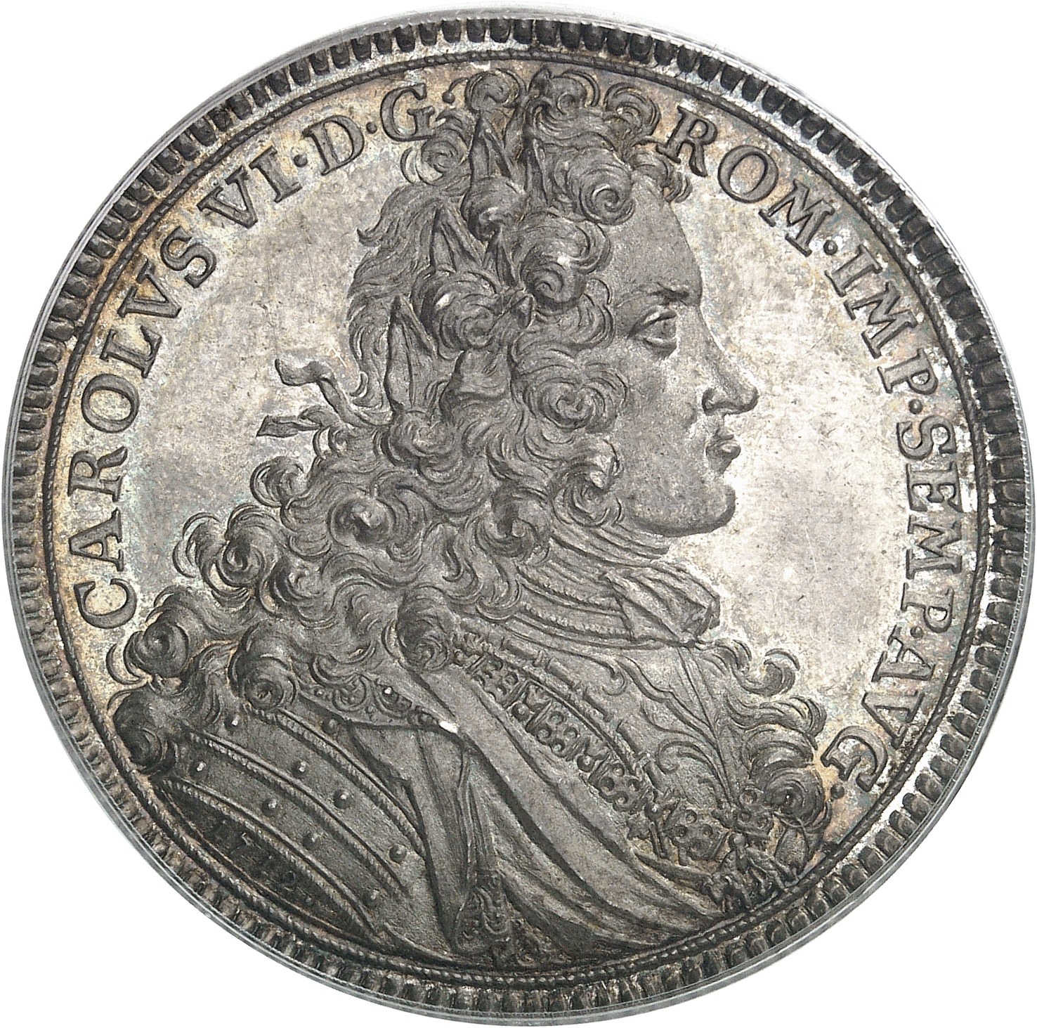 Av. CAROLVS VI. D. G. - ROM. IMP. SEMP. AVG. Buste lauré, drapé et cuirassé à droite ; au-dessous (date).
