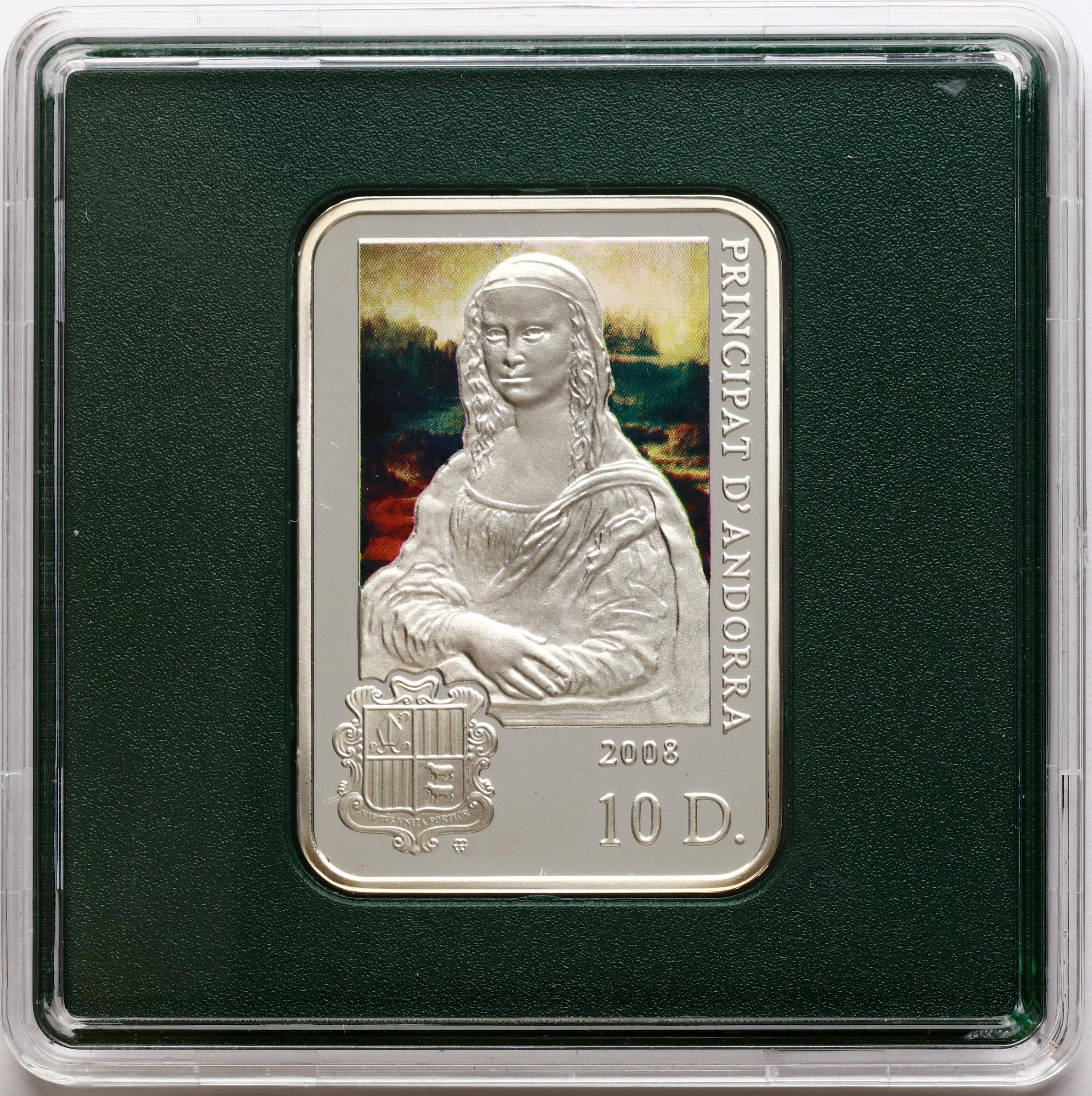 Andorra. 10 Diners 2008 MW, Leonardo da Vinci. Silver .925, coloured, 28.28 g. KM 244. In plastic pack.