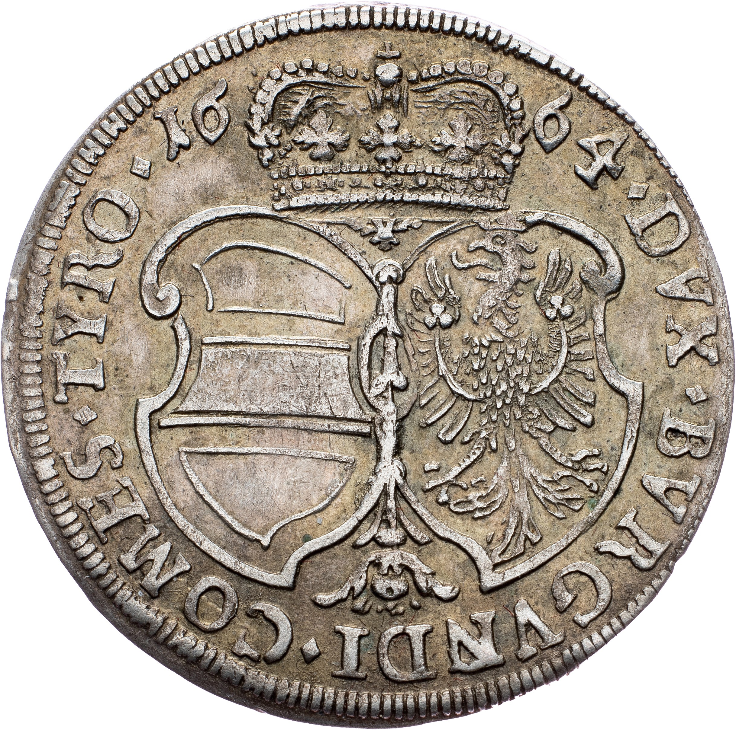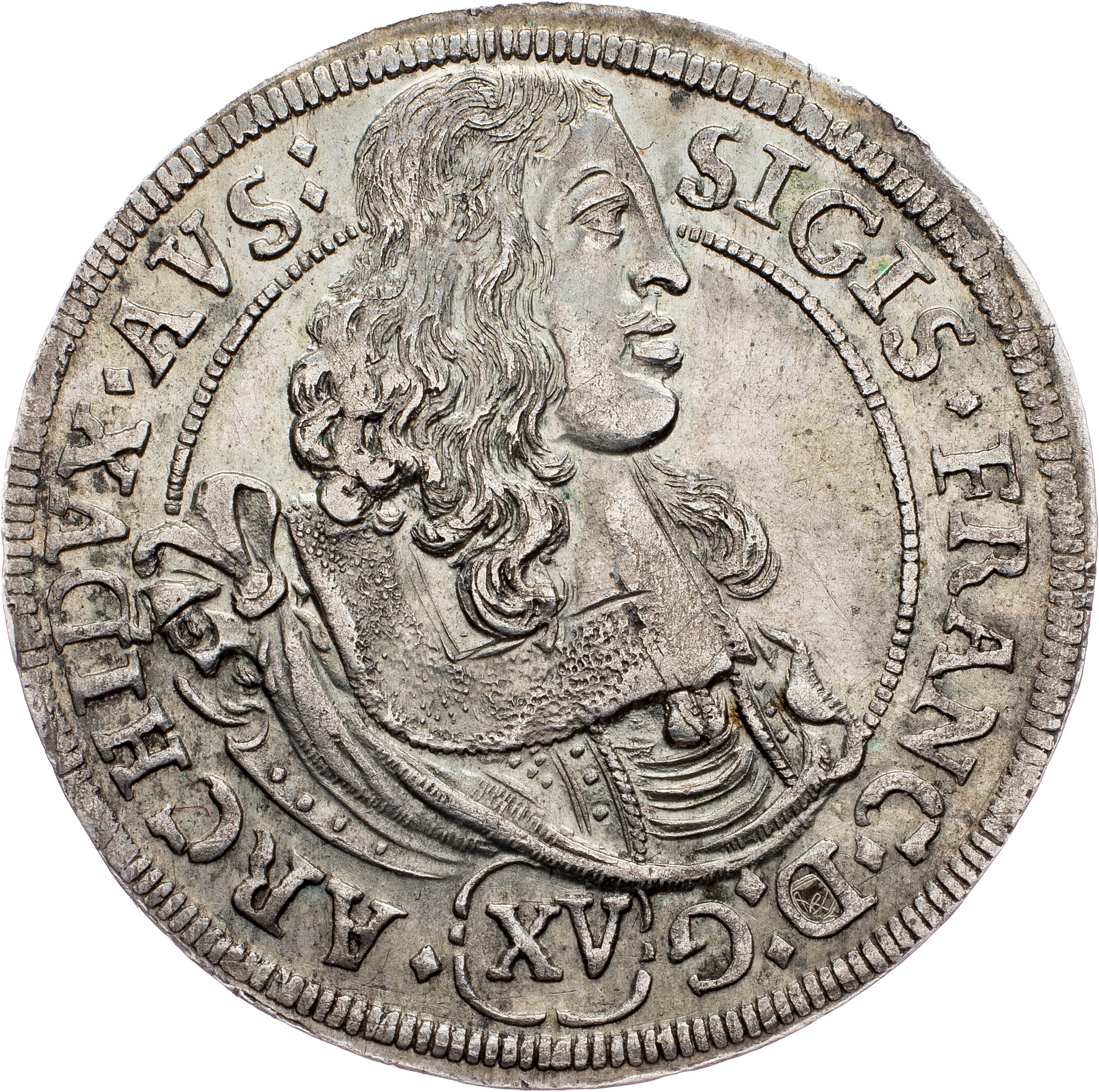Archduke Sigismund Franz, 15 Kreuzer 1664, Hall, Ag|toned; EF