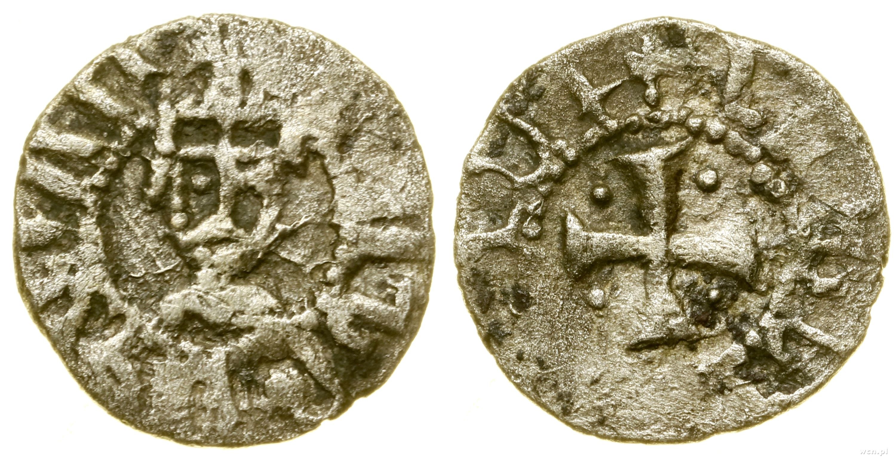Aw: Popiersie władcy na wprost, legenda, Rw: Krzyż, w każdym kącie kulka, legenda