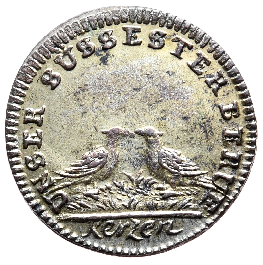 Na awersie dwa gołębie i napis UNSER SÜSSESTER BERUF