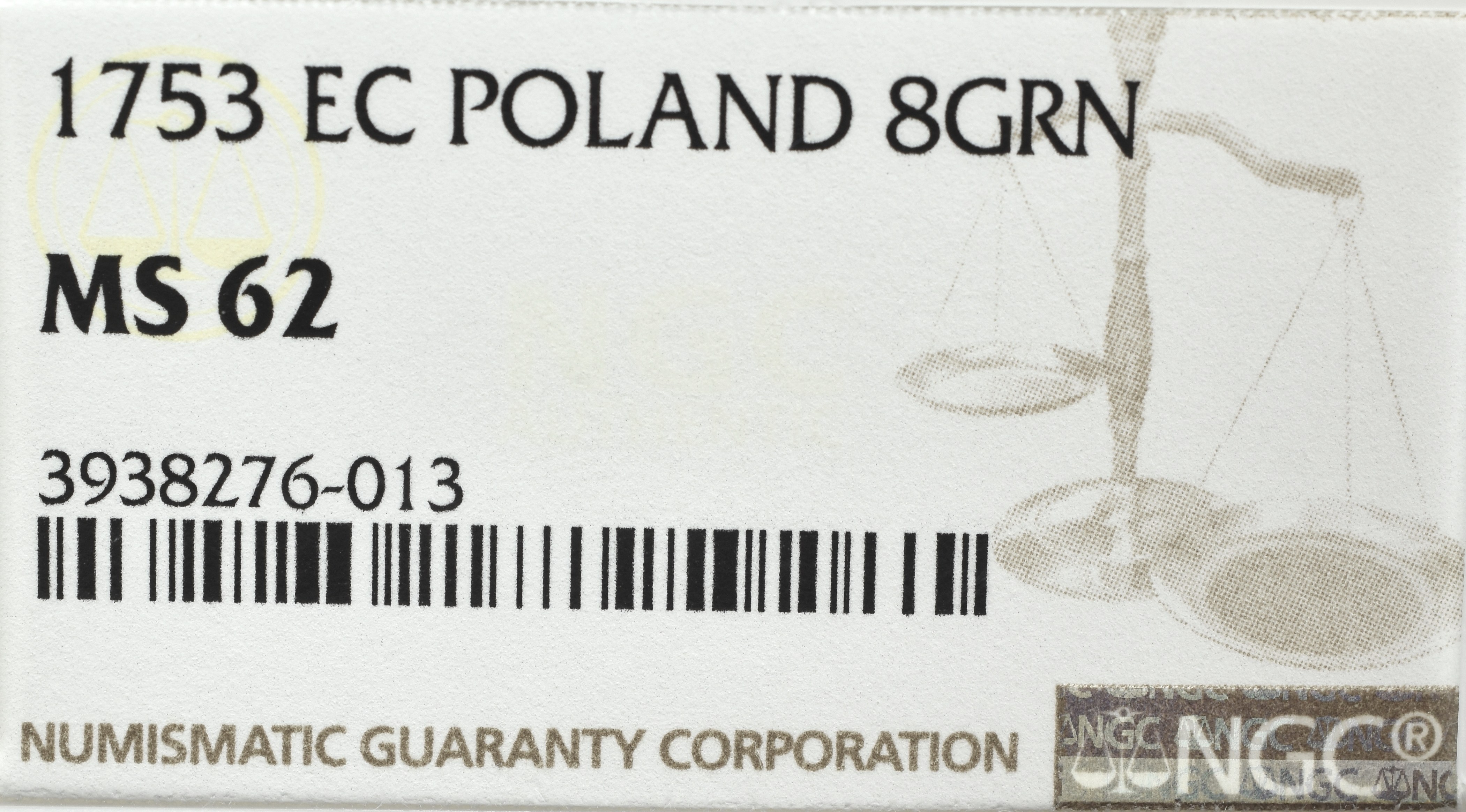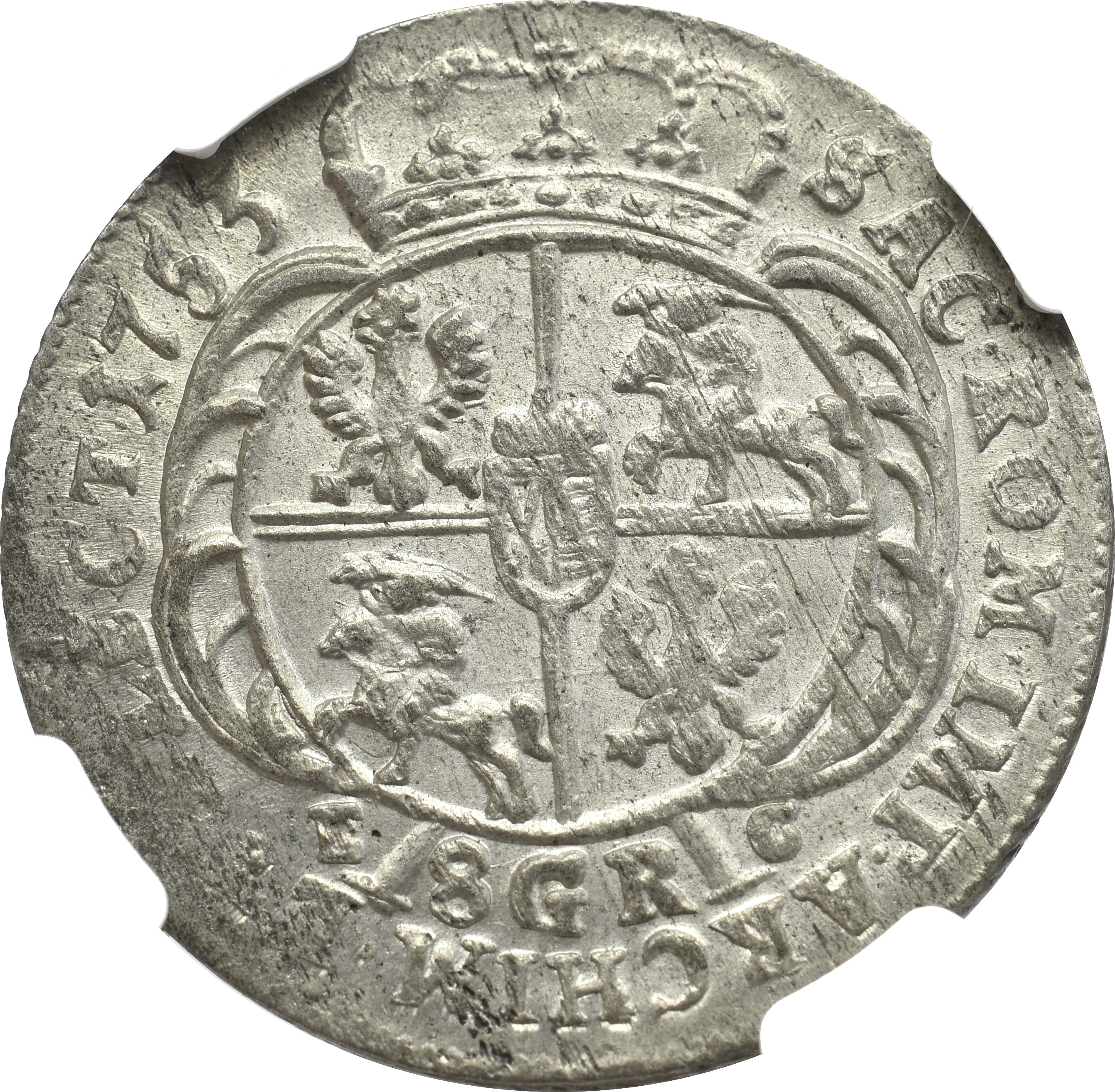 August III Sas, 8 groszy (złotówka) 1753 EC, Lipsk - NGC MS62