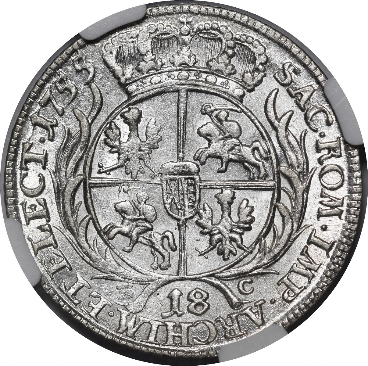 Na rewersie ukoronowana tarcza herbowa. Pod tarczą oznaczenie nominału 18 i