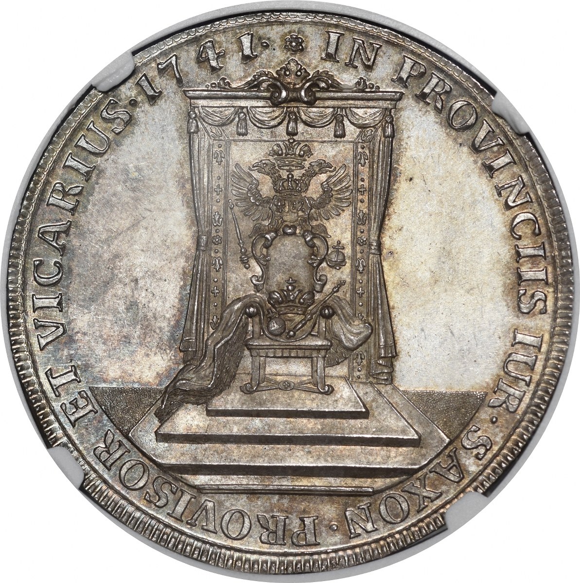 W otoku napis przedzielony u góry rozetką: IN PROVINCIIS IUR SAXON PROVISOR ET