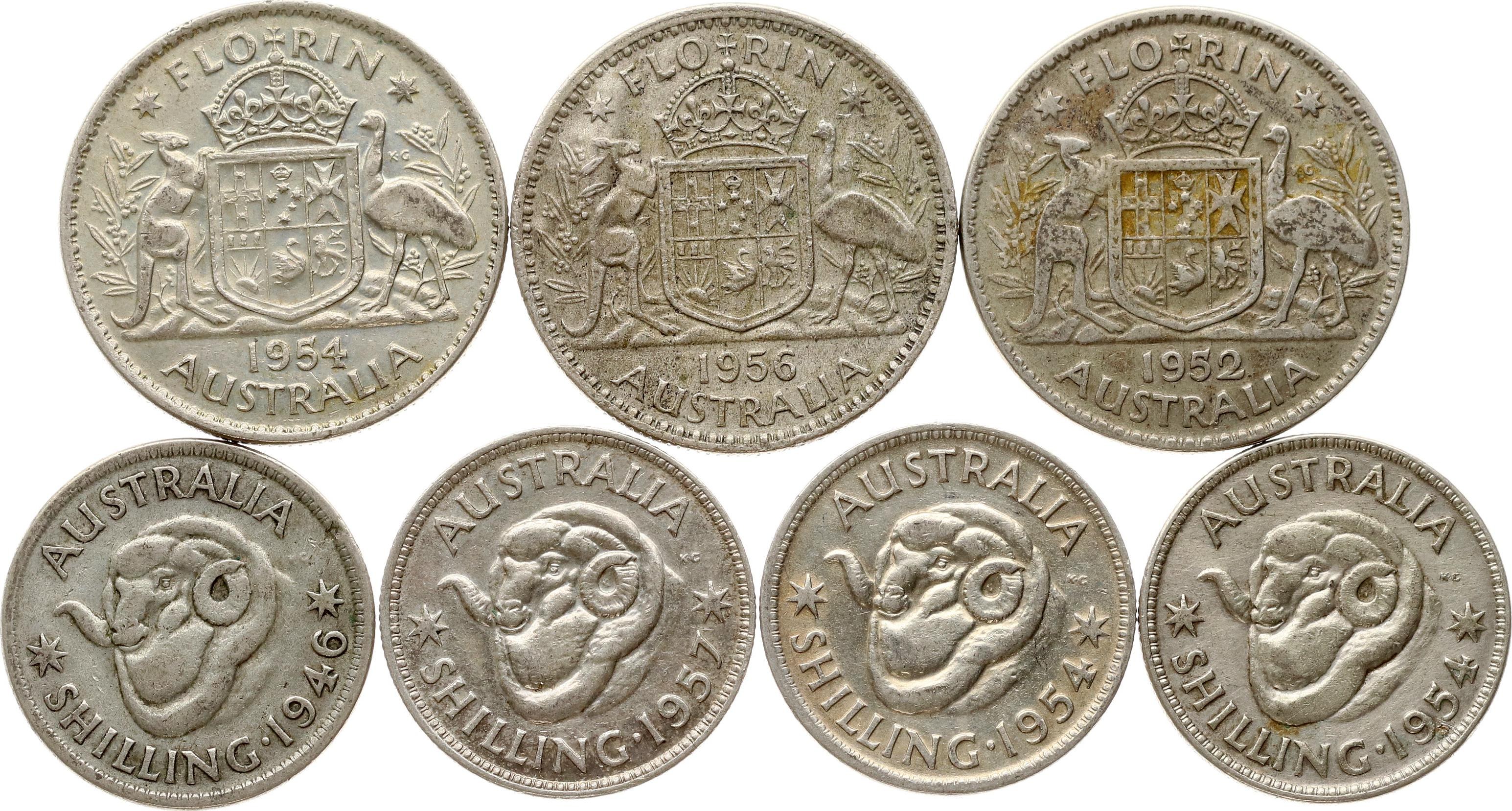 Australia 1 Shilling & 1 Florin 1946-1957 Lot of 7 coins